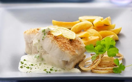 10. Lepel de warme saus over de kabeljauw en serveer direct met gebakken aardappeltjes of gekookte aardappelen.